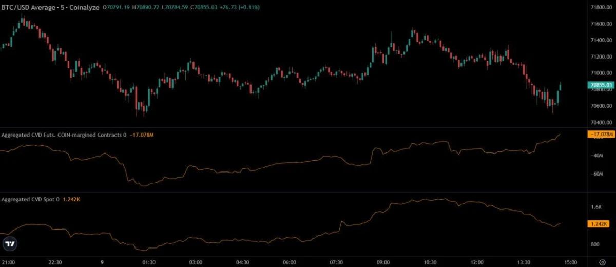 That difference matters because spot flow usually reflects more direct buying and selling pressure in the underlying market. When spot sells while perps keep buying, the move can become fragile. In other words, leveraged traders may be pushing for upside while actual spot demand weakens.