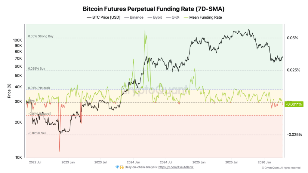 $BTC Futures Perpetual Funding Rate (7-day SMA). Source: CryptoQuant.