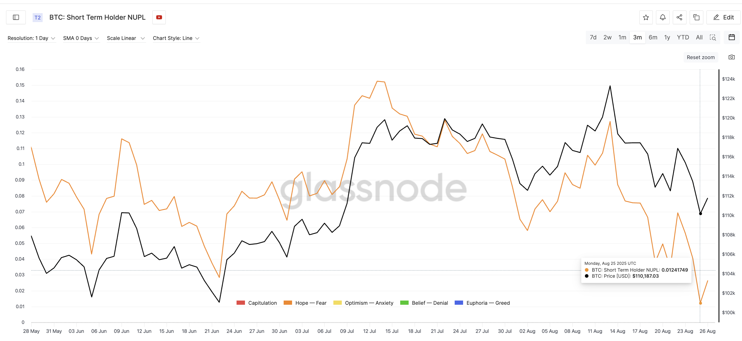 This is important because each time the short-term holder NUPL dropped to such low levels recently, the Bitcoin price has staged a rebound. On June 5, when the value fell to 0.04, the Bitcoin price rallied from $101,626 to over $110,000. On June 22, at 0.02, prices again climbed soon after.