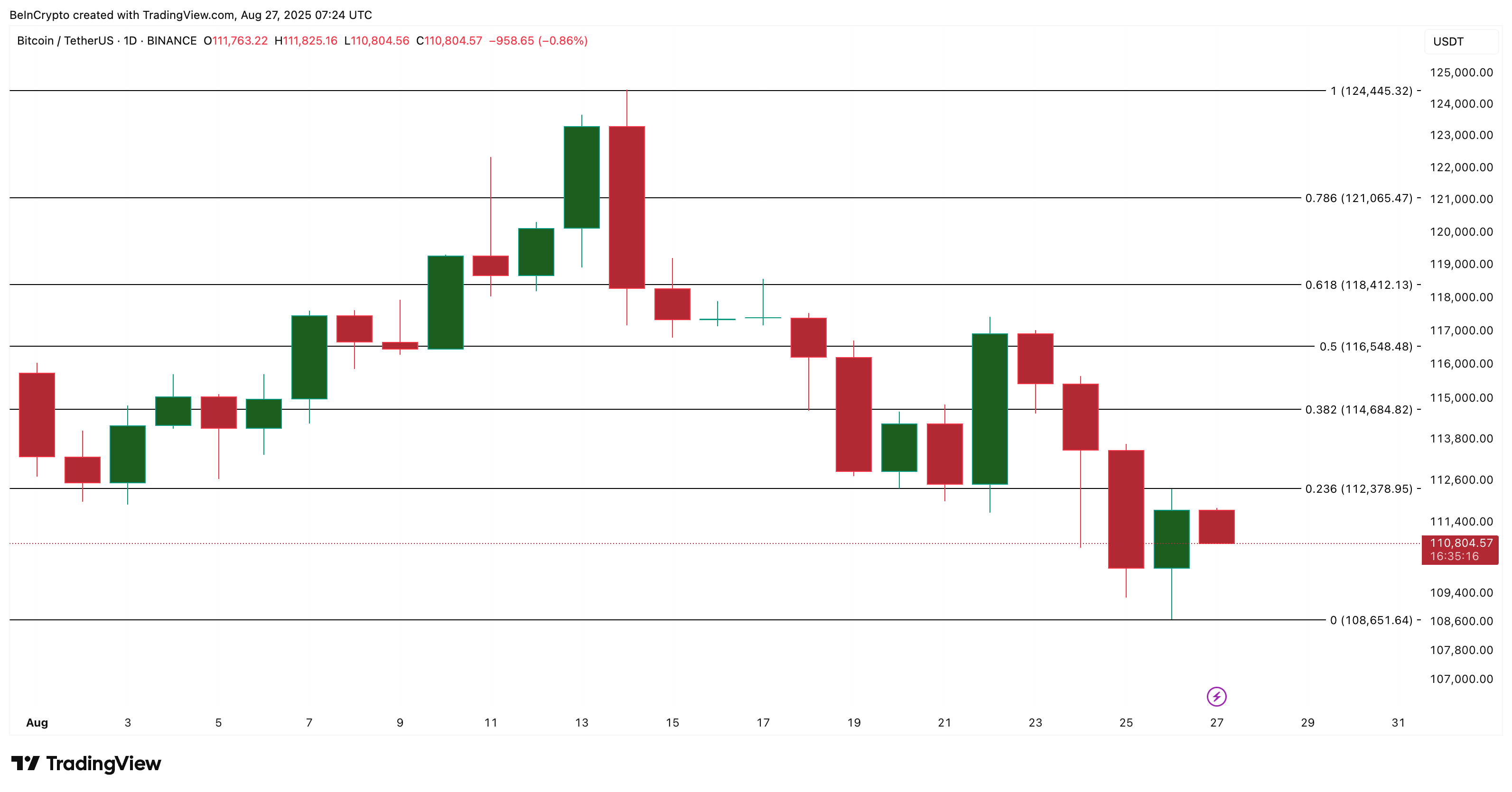 If the sellers regain strength and inflows rise for an 11th day, Bitcoin could break below $108,600. That would open the way for deeper losses.