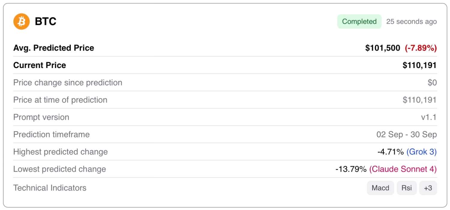 To set a BTC price target for September 30, 2025, Finbold’s AI prediction agent used multiple LLMs to generate an average forecast for improved accuracy while incorporating momentum-based indicators into its context. You can experiment with the existing prompts or create your own. Try here now.