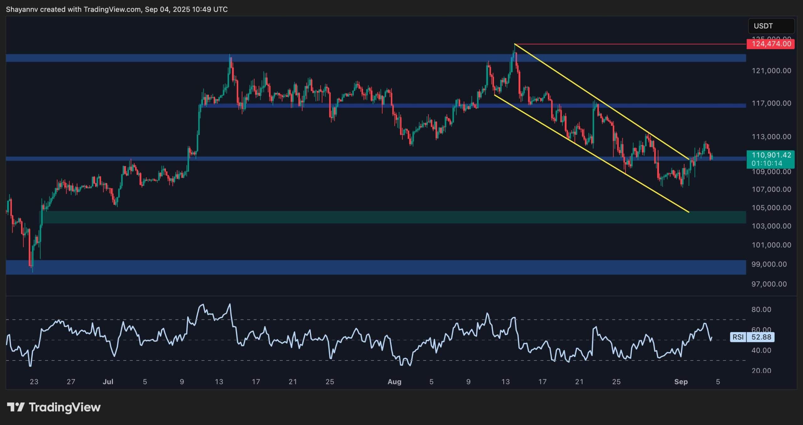 As long as the $110K level holds, bulls may attempt another push toward the $113K and $117K highs. However, a decisive drop below $110K would likely invite sellers back in, with the $104K fair value gap as the next logical target.