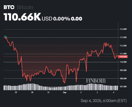 By press time, Bitcoin was trading at $110,665, having made a modest decline of about 0.6% in the last 24 hours. On the weekly timeframe, however, the asset is up 2%.