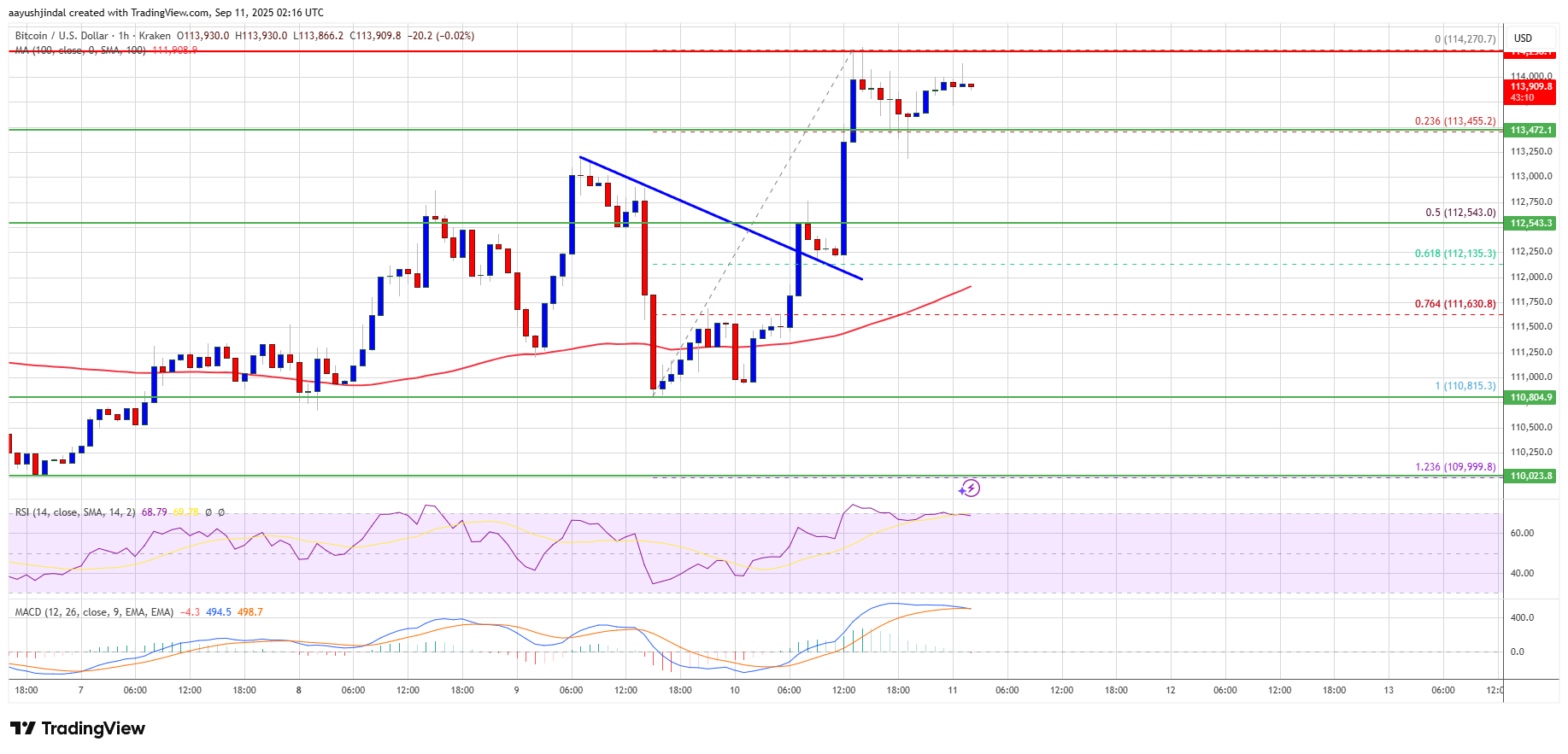 There was a minor decline below $114,000. The price tested the 23.6% Fib retracement level of the recent move from the $110,815 swing low to the $114,270 high.